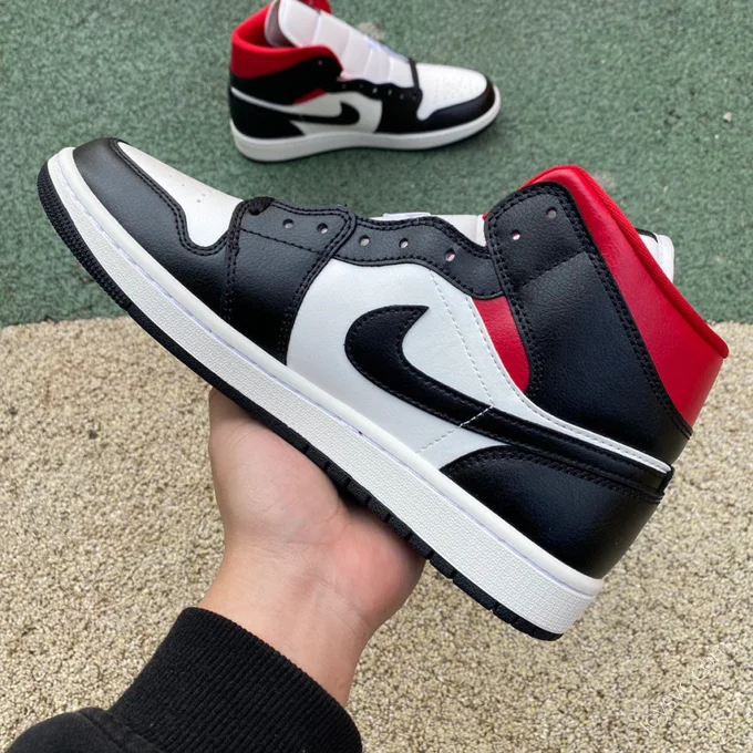 Air Jordan 1 Mid Black White Red Sneakers DD9338-016