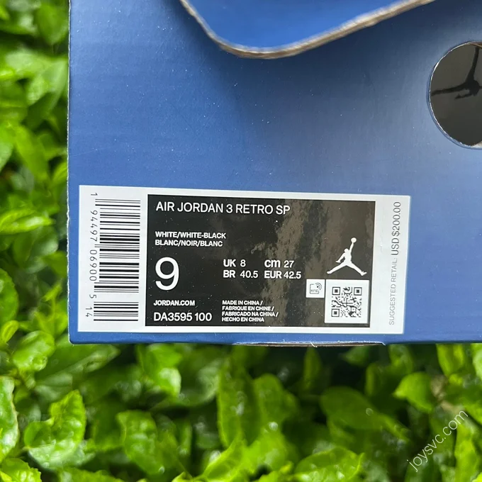 Air Jordan 3 x Fragment White Black Pure Version DA3595-100