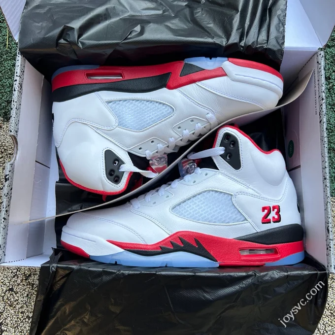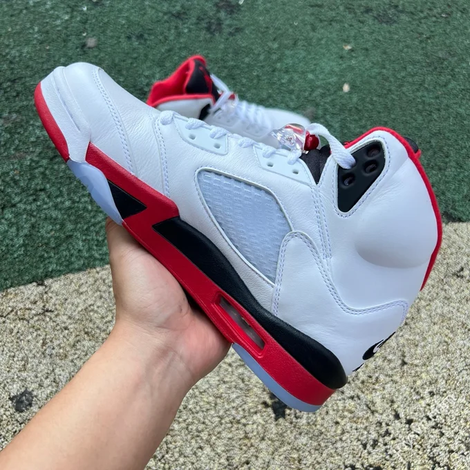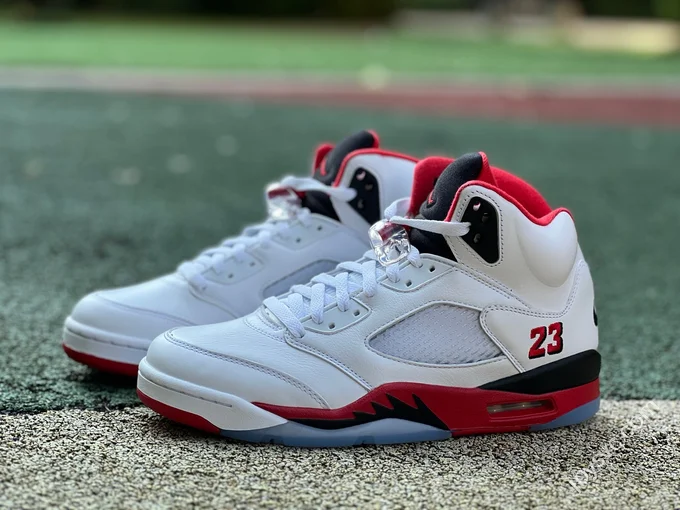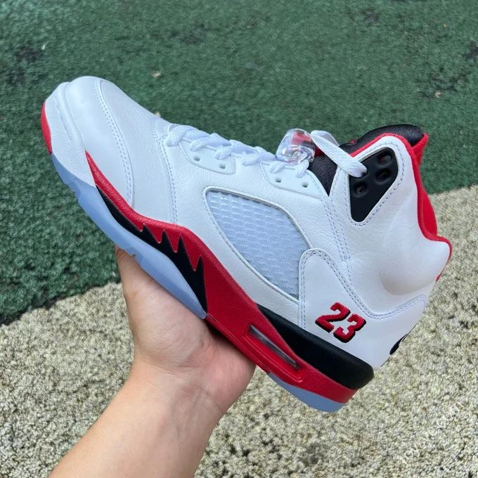 AJ5 White Red Fire Red Black Tongue Sneakers HQ7978-101