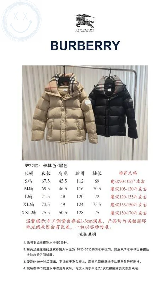 Burberry Down Jacket Luxury Men’s Puffer Sizes S-2XL
