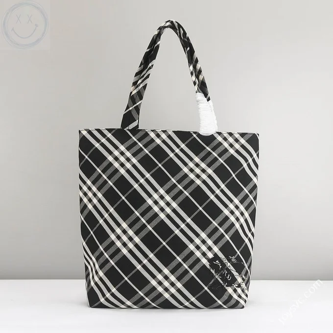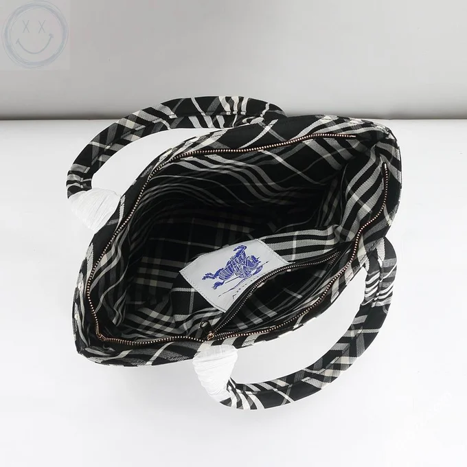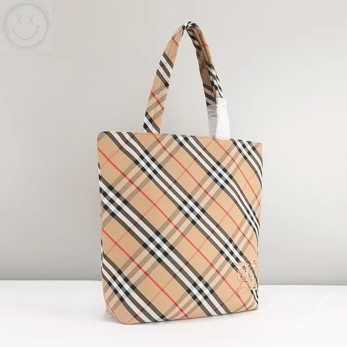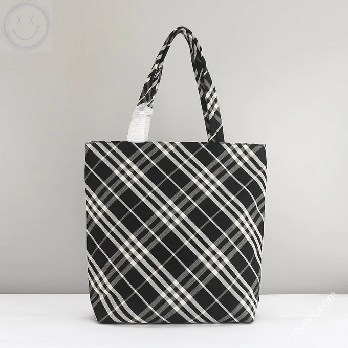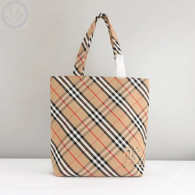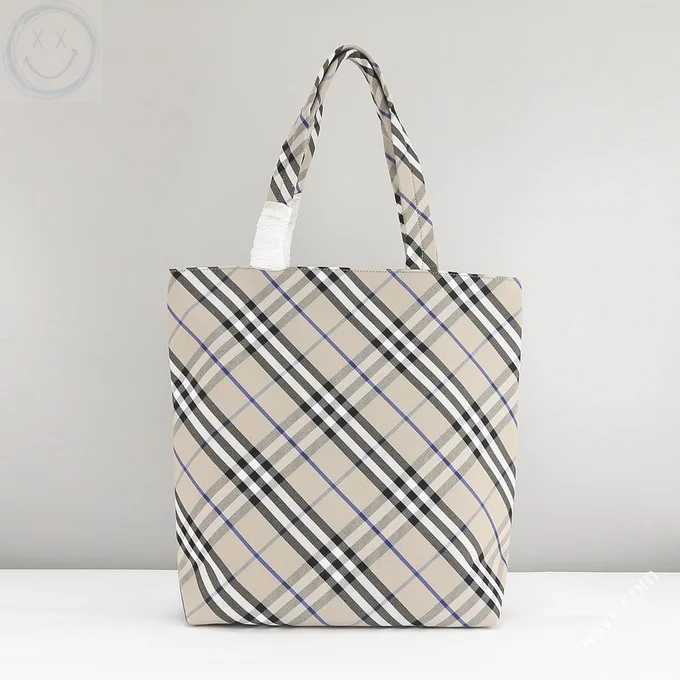 Burberry Original Shopping Bag Large Check Canvas Authentic Luxury
