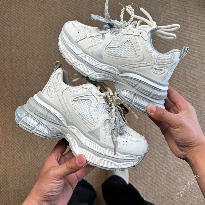 GG-CC Chunky Platform Casual Shoes Distressed Dad Shoes Silver