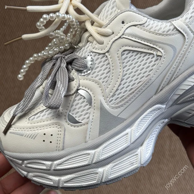 GG-CC Chunky Platform Casual Shoes Distressed Dad Shoes Silver Pink
