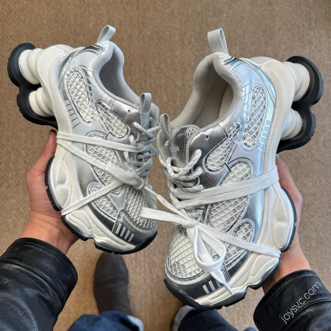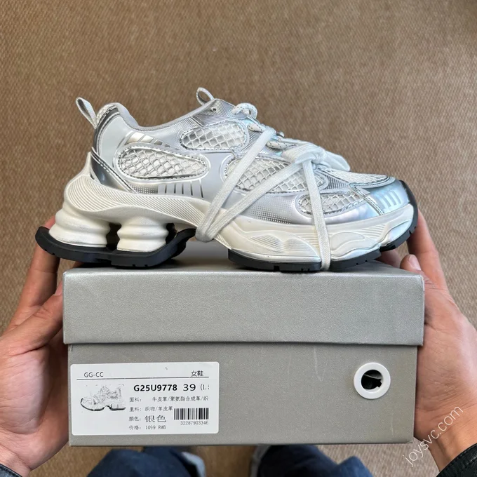 GG-CC Chunky Platform Casual Shoes Distressed Dad Shoes Silver Pink