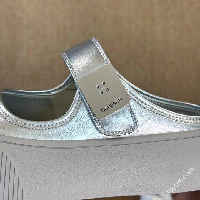 MAX 2025 Zhao Lusi GG-CC 5CM Platform Height Increasing Half Slippers Silver