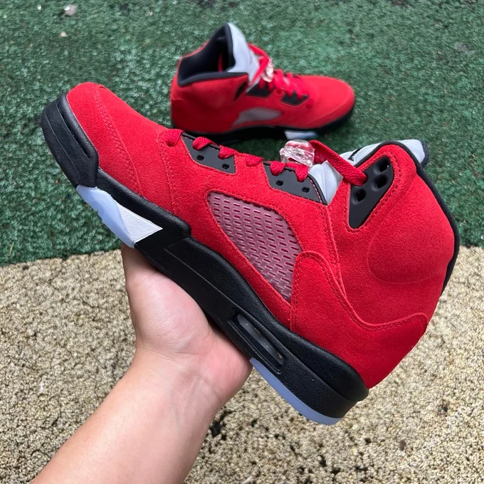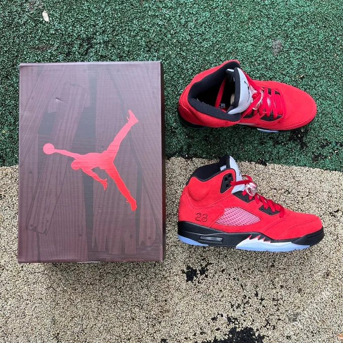 AJ5 White Red Fire Red Black Tongue Sneakers HQ7978-101