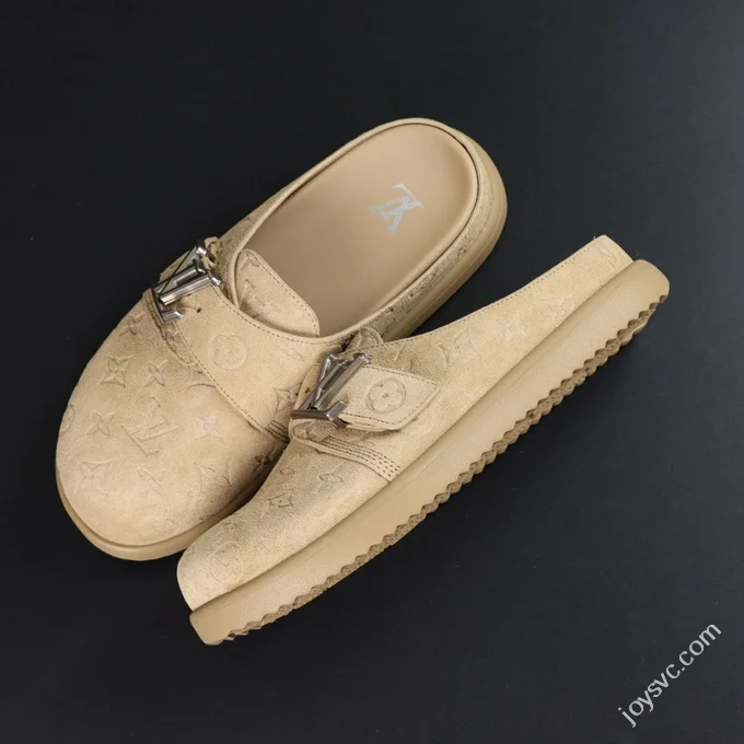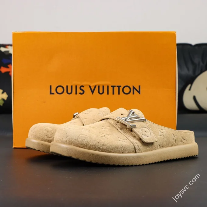 LV Half-Slipper Grey LOUIS VUITTON Cosy Comfort Denim Mules