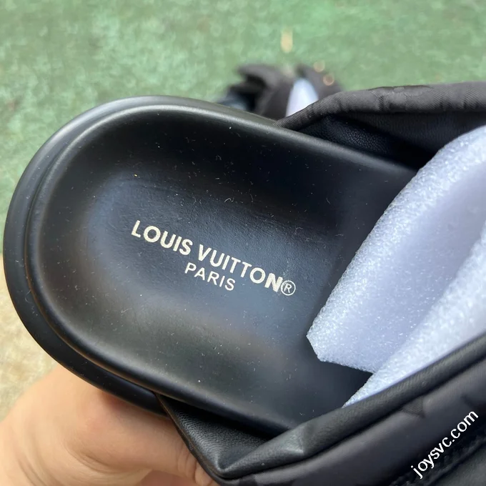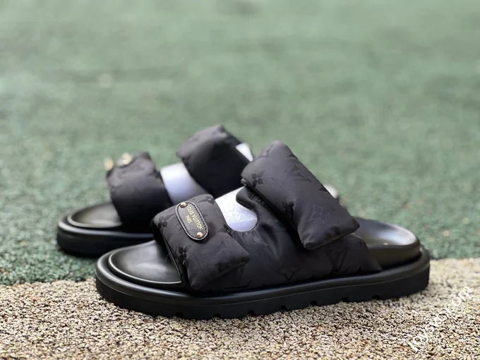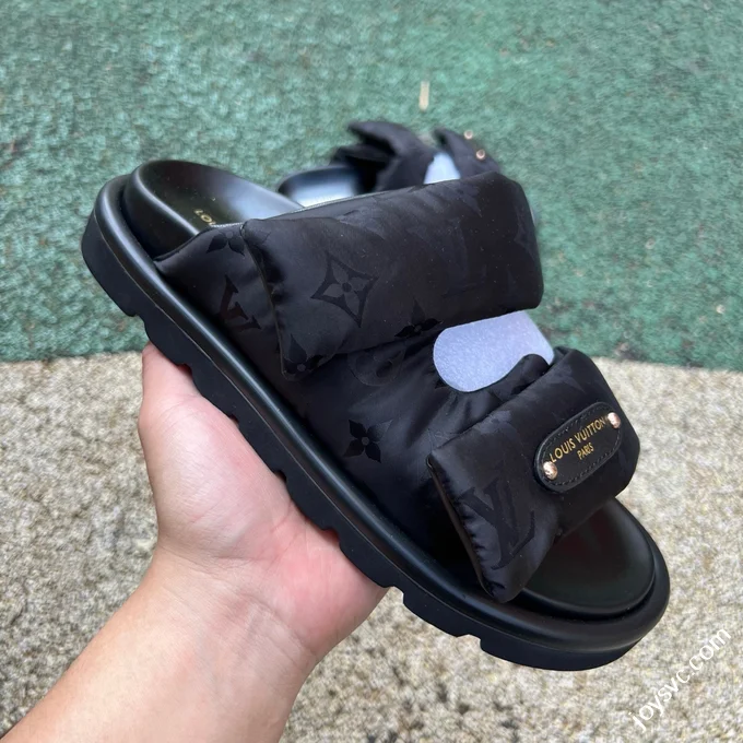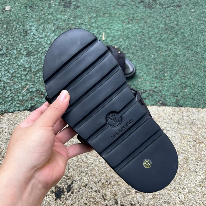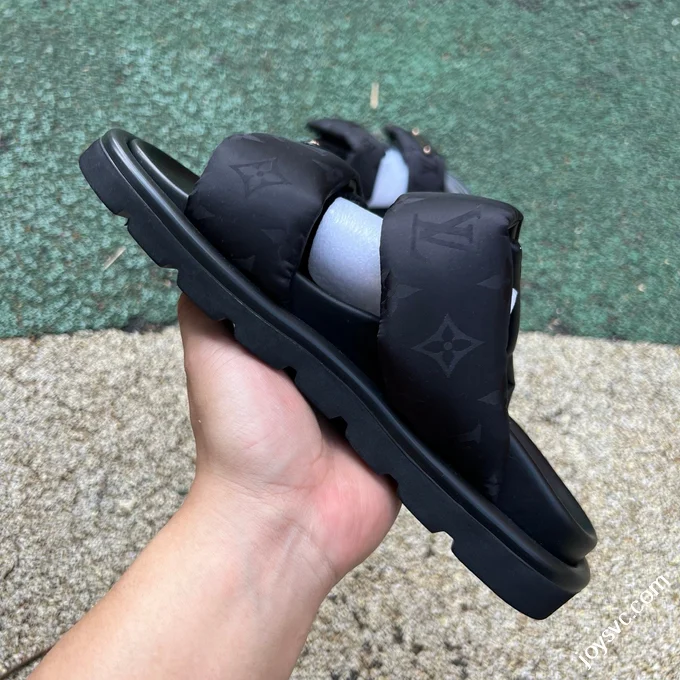 LOUIS VUITTON Monogram Print One-Strap Slides Black