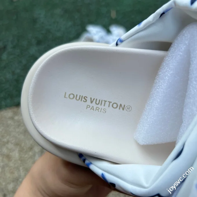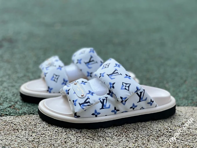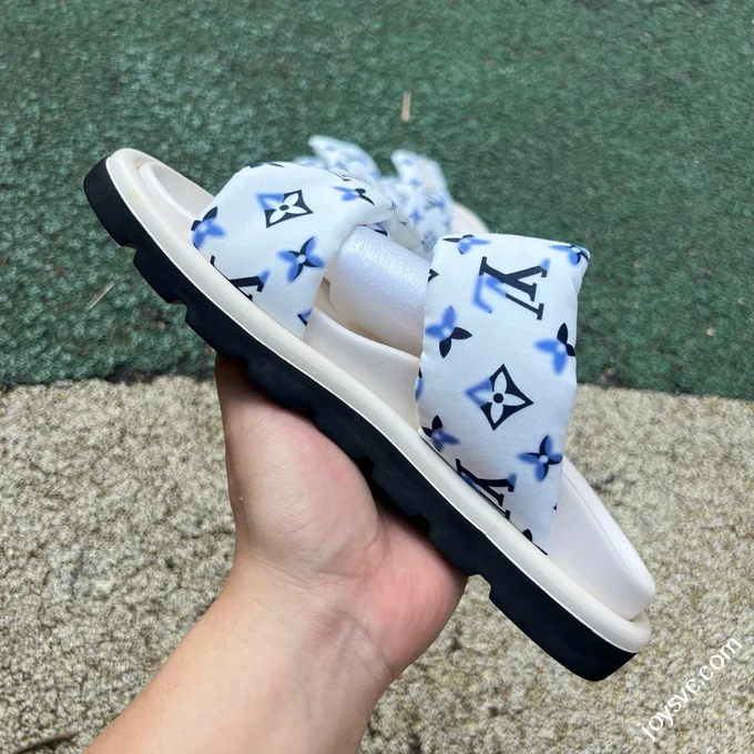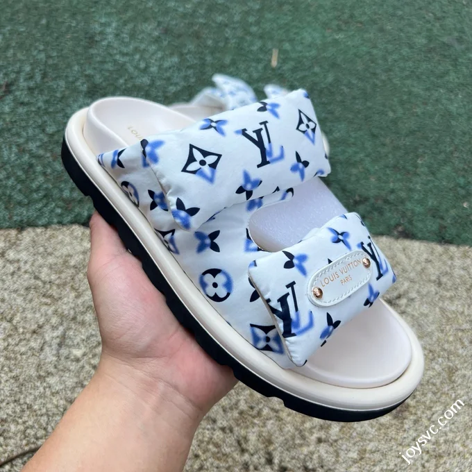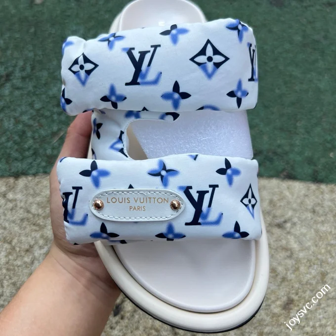 LOUIS VUITTON Monogram Print One-Strap Slides Blue