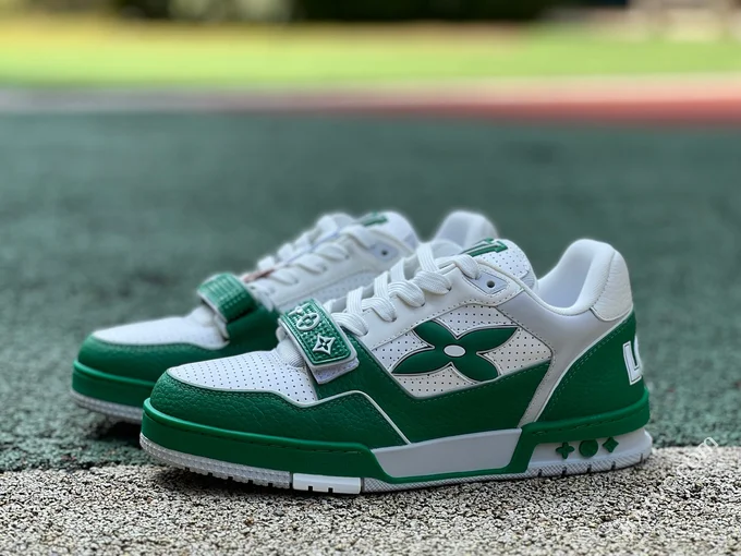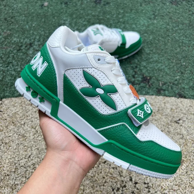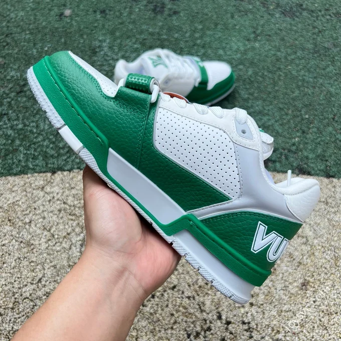 LV Trainer Black Grained Leather White Logo New Packaging
