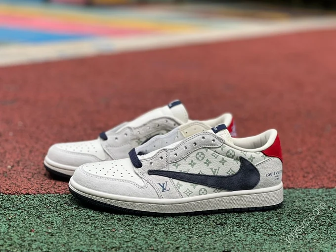 Travis Scott x Air Jordan 1 Low x Louis Vuitton Grey White Sneakers sj2068-001