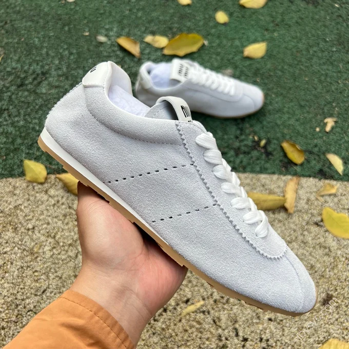 MIU MIU Plume Beige Leather Sneakers