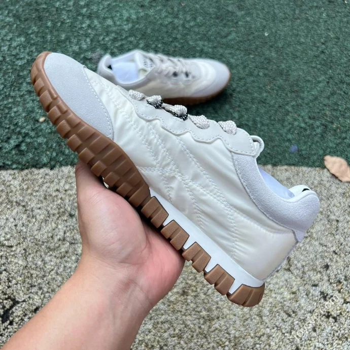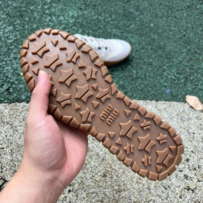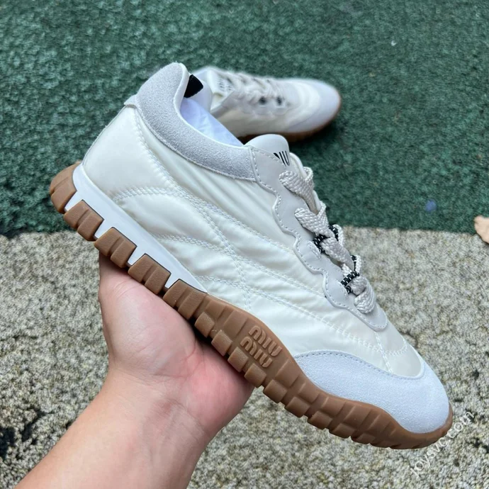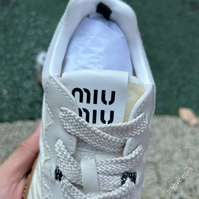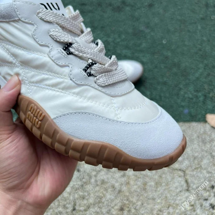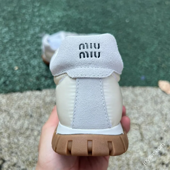 Miu Miu Tyre Suede Trainer Shoes Beige Grey