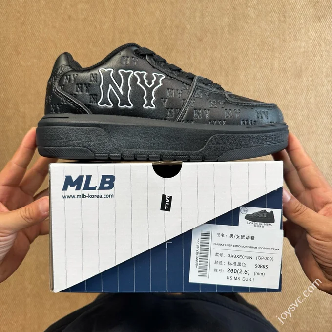 MLB Chunky Liner College Style Platform Sneakers Denim Black White 3ASXD015N (GP002)