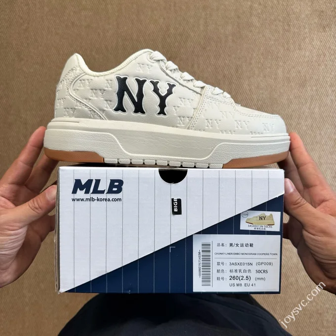 MLB Chunky Liner College Style Platform Sneakers Denim Beige Pink 3ASXS015N (GP002)
