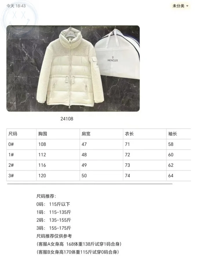 Moncler Down Jacket Luxury Unisex Puffer Sizes 0-2