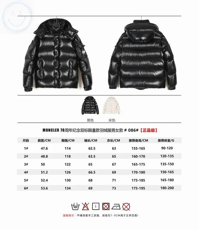 Moncler Down Jacket Luxury Unisex Puffer Sizes 1-4