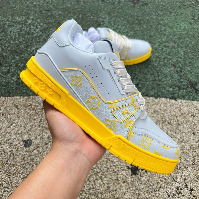LV Trainer White Lychee Grain Leather