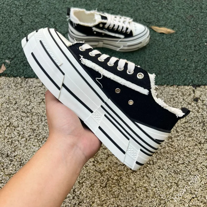 Alexander McQueen Platform Canvas Shoes Low Top Black White