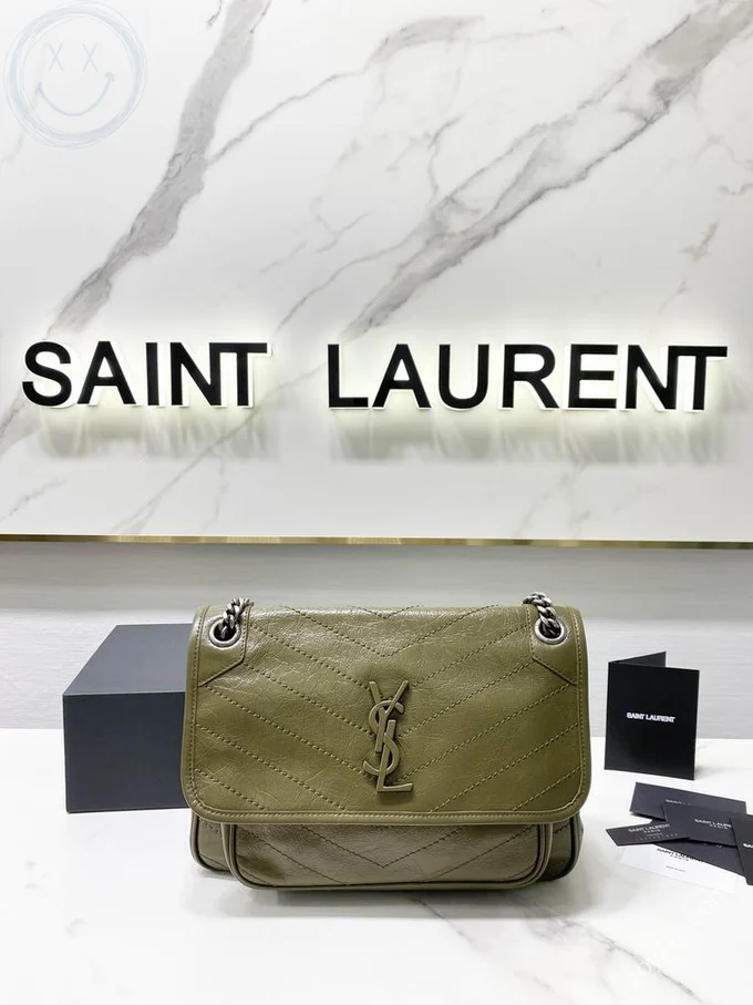 YSL Original Niki Chain Bag Authentic Crinkled Leather